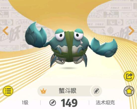 一起来捉妖蟹斗眼的造型有点蠢萌蠢萌的,不要看他傻傻的外表就以为他很弱哦,这个妖灵其实是非常强力的,今天就来为大家介绍一下这个妖灵吧。