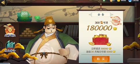 这个大唐钱庄非常值得玩家购买,首先你购买了之后立即就可以得到30000个元宝,而且每天都能够领取5000元宝,总计也就是180000元宝,要知道游戏中元宝还是比较稀缺的一个资源,尤其是后期常常是入不敷出,而购买这个大唐前庄就可以让你在玩的过程中轻松不少,毕竟赚取元宝在游戏中还是比较肝的,所以在小编看来还是非常值得氪金的一个项目。