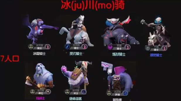 7人口:冰霜骑士+灵刃骑士+炼狱骑士+邪灵骑士+狂战士+绝命巫医+背叛者