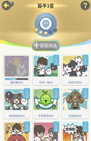 在成长之路上我们可以看到上方等级阶段,是新手三星,那么成长之路的玩法就是通过完成下方的任务,完成任务要求之后会开启晋级挑战,晋级挑战一般就是打BOSS,优先挑选克制BOSS的系别上场,或者套路打法等等,即可顺利晋级。