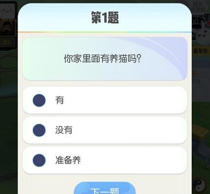 1、升级到22级,参与系统问卷答题,免费获得一只1代猫,属于平民猫,所以怎么做答都可以。