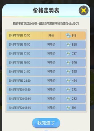 最早上架的一批猫铃铛,会以系统设定的底价出售。此后上架的猫铃铛价格,会在前几个猫铃铛的成交均价上有所上浮。