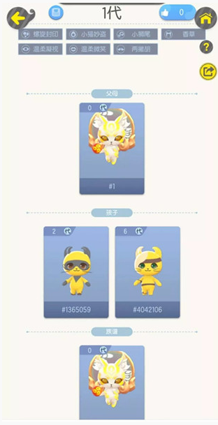 在专属猫详情中,我们能看到每只猫的父母、孩子以及族谱。