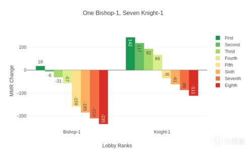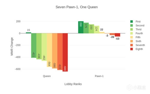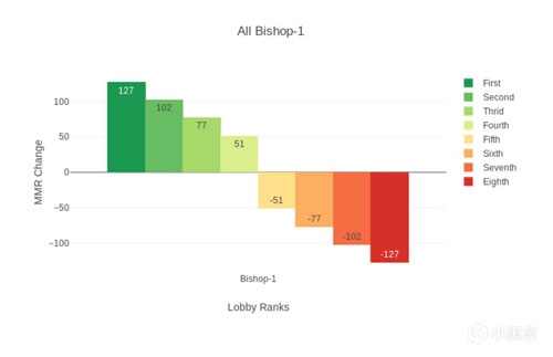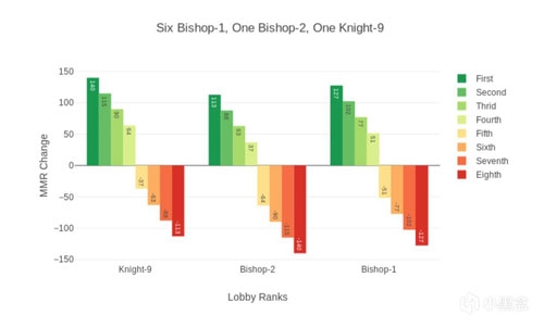 3.MMR变化上下限的存在意味着MMR算法不是简单的算术加减。举例来说,一个主教玩家在自动匹配对局中获得第一名将加15分,而他“本该”扣分。因此,MMR的通货膨胀是存在的。