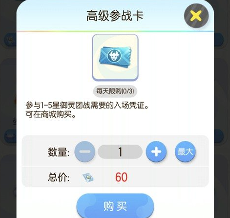 介绍:参与1-5星御灵团战需要的入场凭证。可在商城购买。