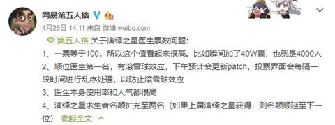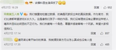 一开始官方还在装死,质疑声越来越大后,他们终于会回复玩家给予说明了。但这时不管官方怎么解释,还是会有人不相信。而喜欢生的玩家们则认为医生的人气就是这么高。