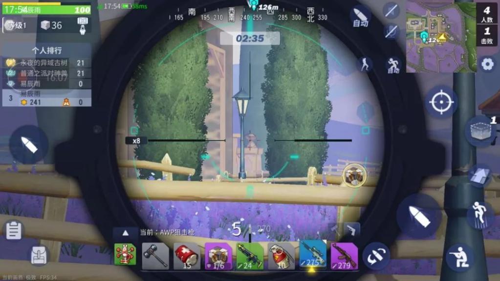 在小伙伴开镜的时候,必须要有高度的视野,不然会被障碍物遮挡。并且有掩体可以为自己挡子弹,这个掩体还能够卡视野(即利用镜头卡出一些本应看不到的视角)。找一个良好的位置是非常重要的,位置不好就不能发挥出倍镜的威力。一般推荐在房屋的高层、山坡的半腰、一键建造的掩体、搭桥到空中使用,这些位置都符合上述的两个要求。