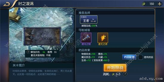 “时之漩涡”是一个非常特别的副本,每周限入2次,每天限入1次,而每人只能使用3次复活,且组不组队遇到的BOSS血量都是一样多的,所以如果可以组队,我们尽量组队前往。呃,如果觉得你那蛇皮走位组队有延时不好发挥,那你单人上也行。