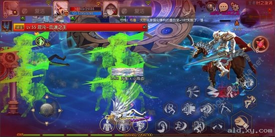 城主对组队很不友好,会给我们加圈圈,相同颜色的圈圈靠近会互相伤害,血少的直接秒杀,而不同颜色的圈圈靠近会相互解除。这个BOSS如果死了,最好不要一起复活,一个一个复活起来干BOSS最好,否则难民们可能复活用完都打不过。