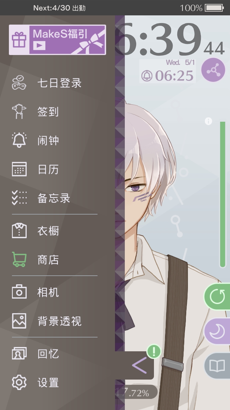 点进去以后我们就能看到很多选项,有“七日登录”“签到”“闹钟”等等。找到“衣橱”(一个小小的衬衫标志),然后点击进入。