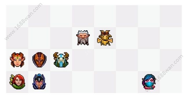 思路:首先你得明白奶德得主要输出就是月骑和风行,所有如果对阵的是刺客流就必须把输出往上提,肉往后拉,来保护后排,就像打第15波野怪一样,反向站位,但是有时候不止剩刺客一家,反向站位容易被其他阵容抓,所以我这里推荐包住输出来打,站位图如下