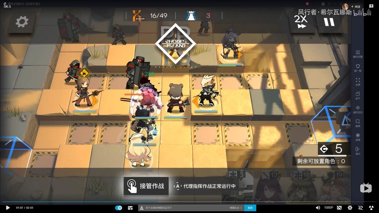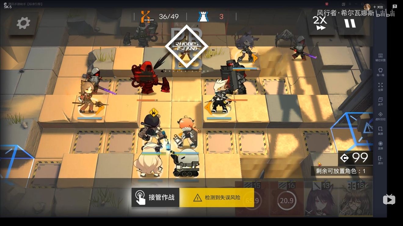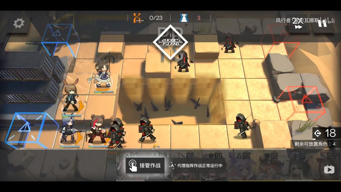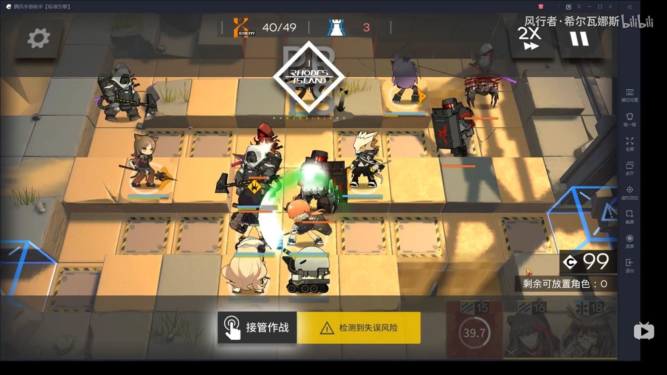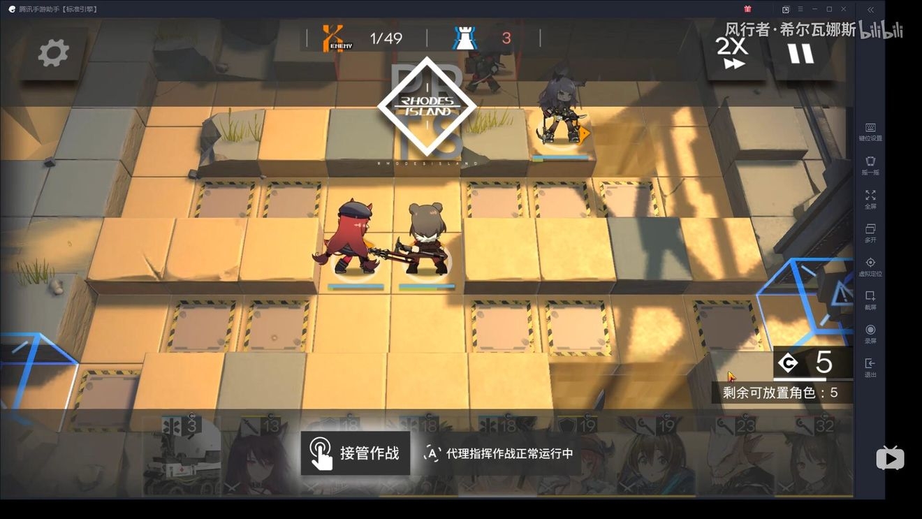 首先在左下布置防线,因为敌人物防较高,建议先用术士防守,布置防线后,开始攒能量(需要攒阿消+单奶+玫兰莎)的费用。
