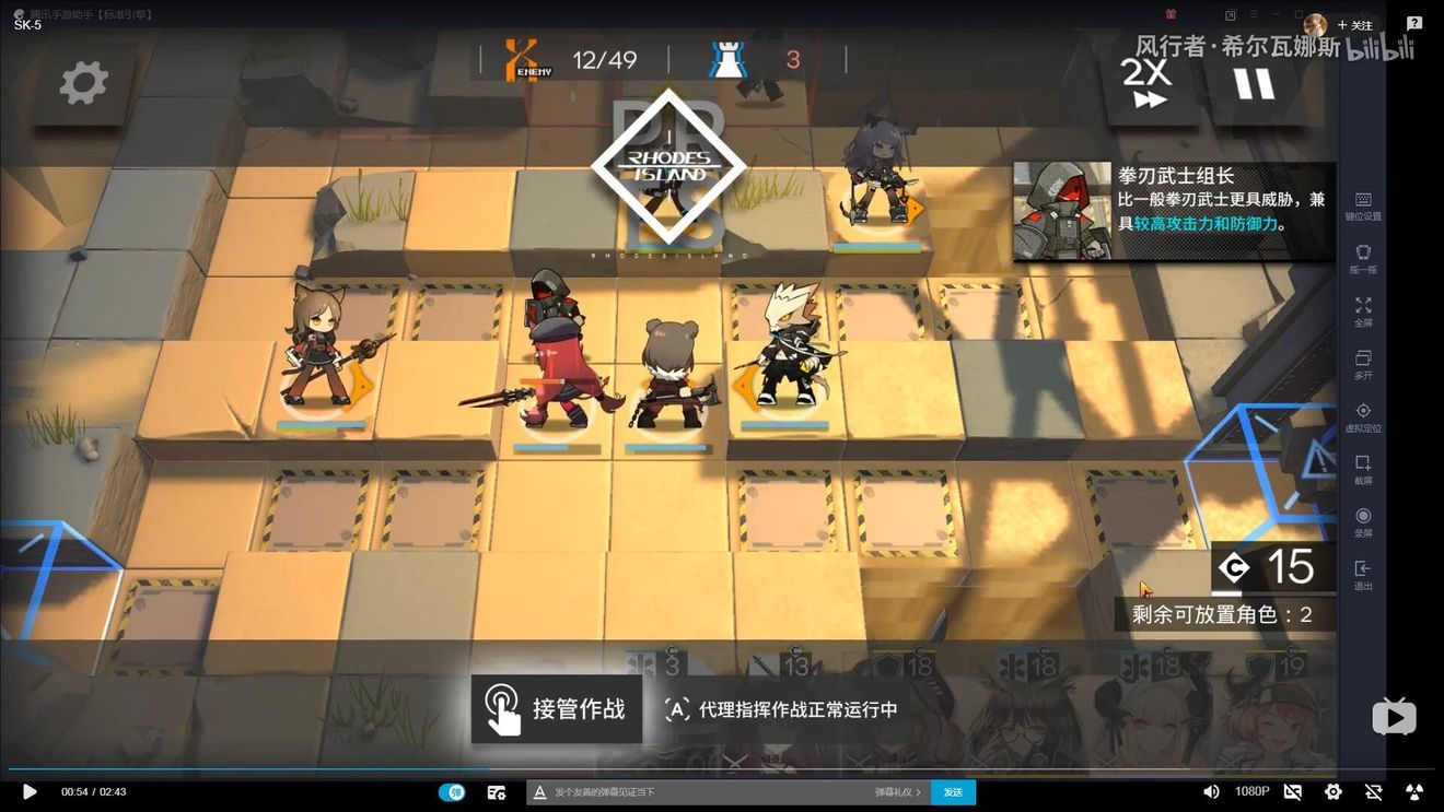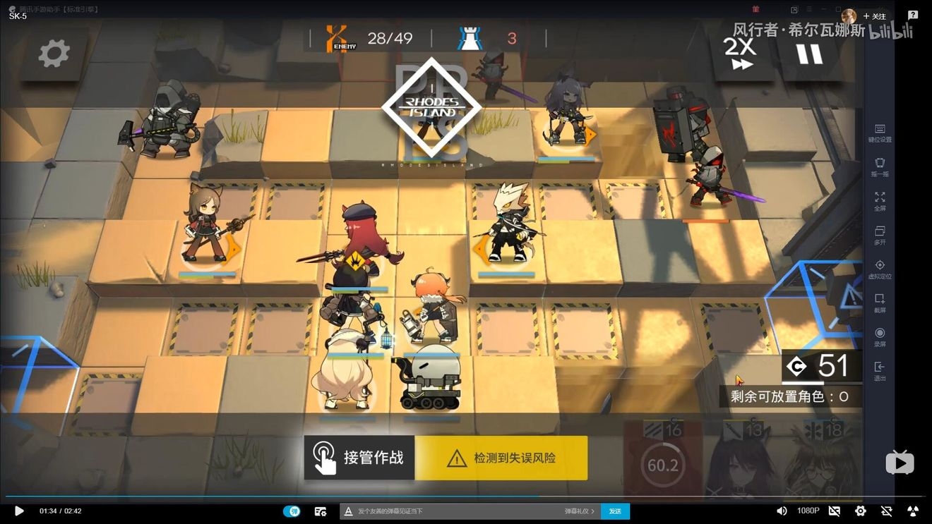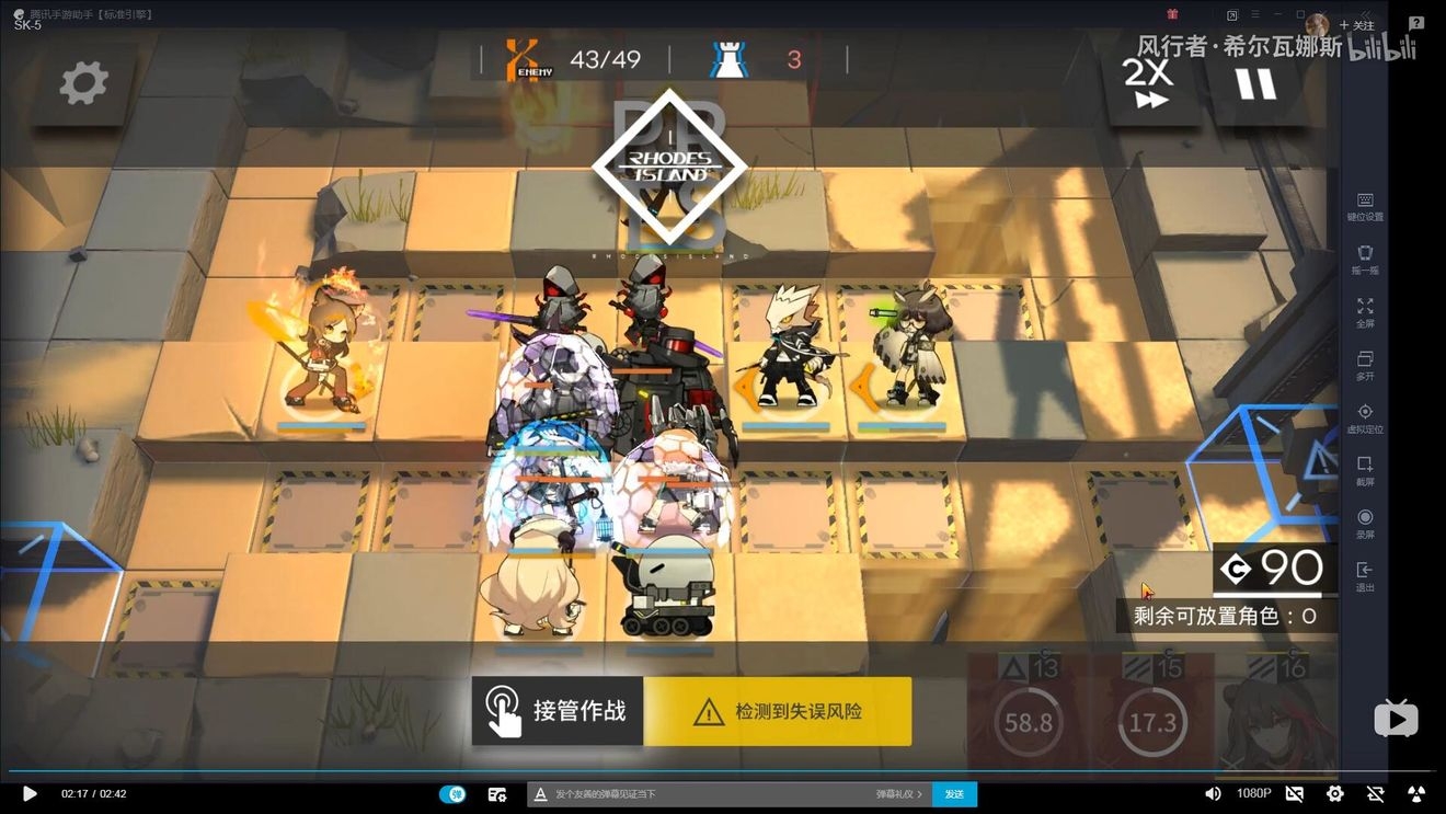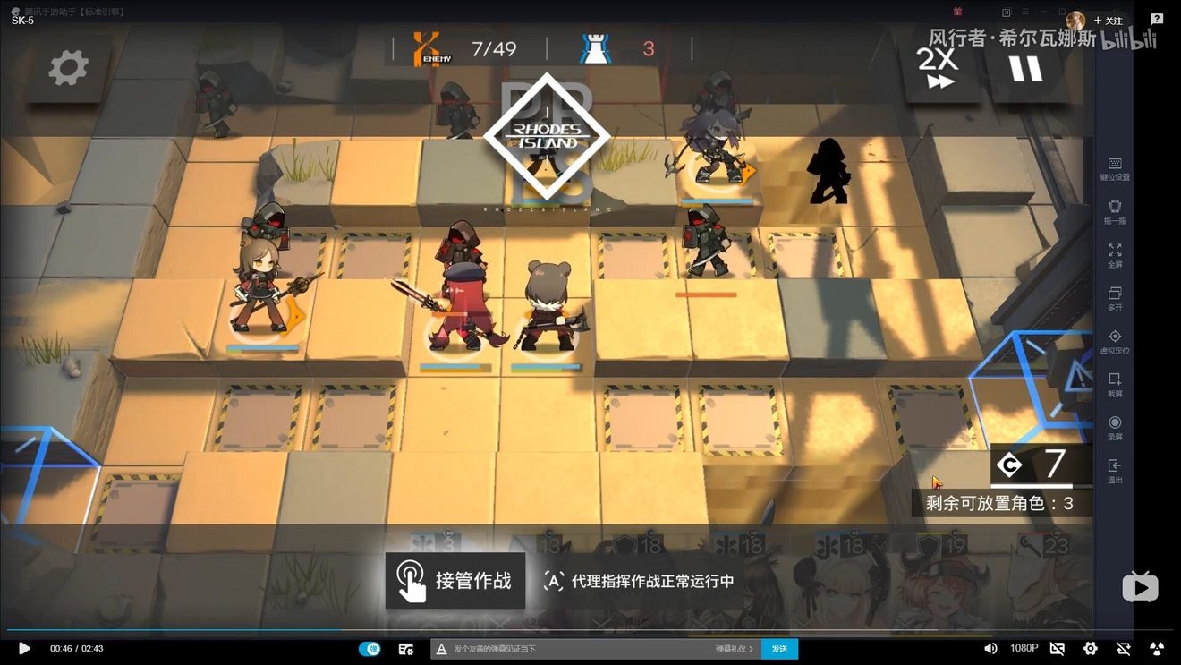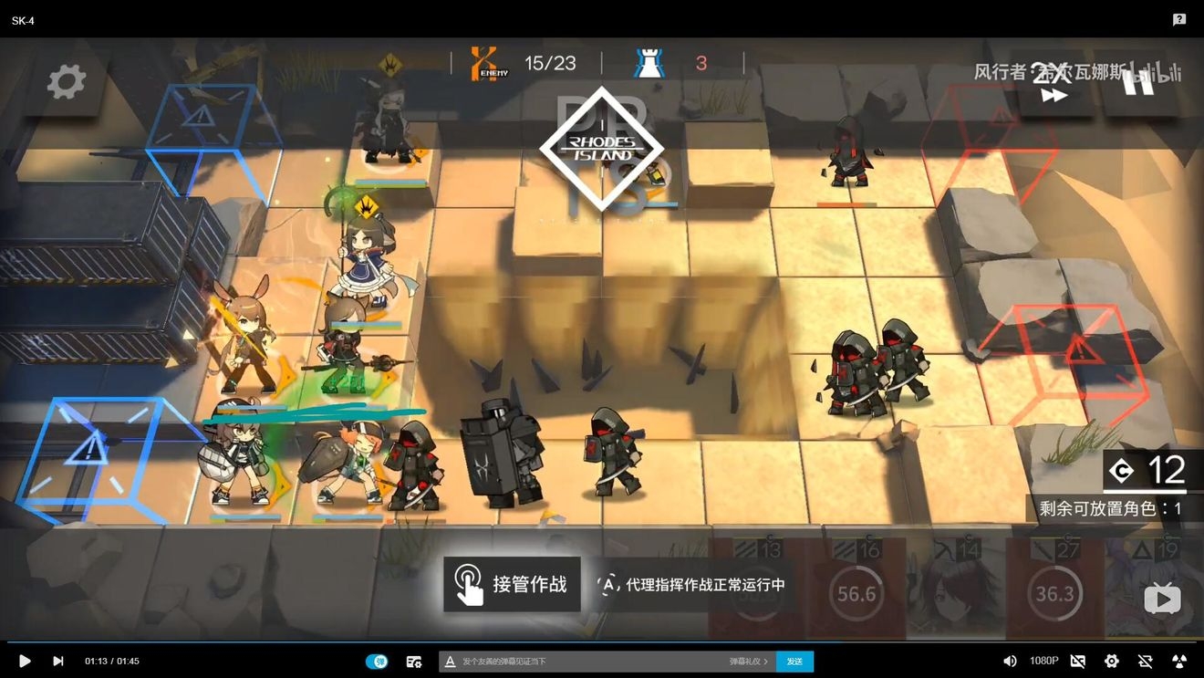 首先在左下布置防线,因为敌人物防较高,建议先用术士防守,布置防线后,开始攒能量(需要攒阿消+单奶+玫兰莎)的费用。