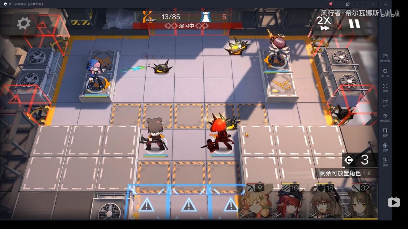 右侧同理,先放能天使,其次阿米娅(这里重点表扬阿米娅,打鸟的伤害比能天使高)