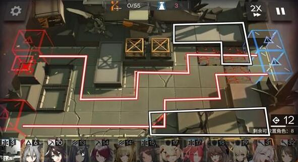 这关除了打法上很难研究出来外,对练度的要求也很高,医疗、重装、狙击、先锋一个练度不够前期都很难能稳住。