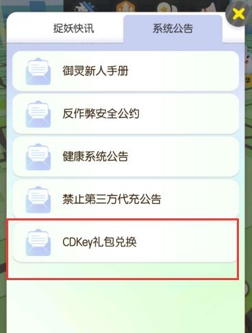 点击系统公告会看到CDkey兑换