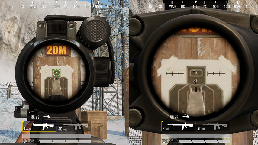 如上图所示,2倍镜和4倍镜的弹道都是第一发击中了胸部,然后第三发子弹跳到了头部,所以说只要利用好连射模式,就可以轻易的将对手淘汰。
