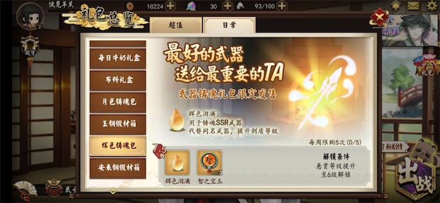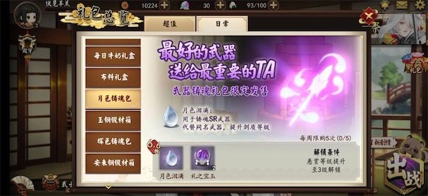 2、初仕召唤开放期间,增加神降优惠礼盒的可购买次数,并且从现金直购调整为蓬莱玉(付费)购买。