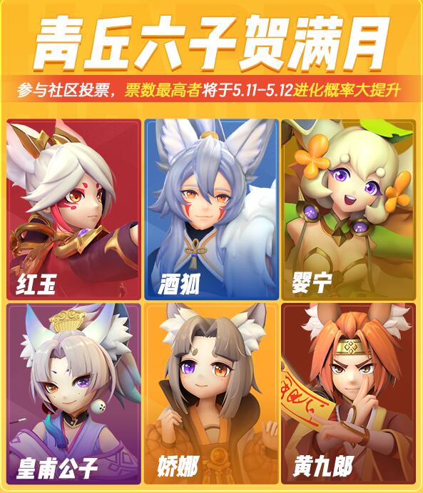 活动环节:5月11日-5月12日,票数最高的Ta觉醒概率大提升!同时小狐狸也将会在地图上大量出现喔~