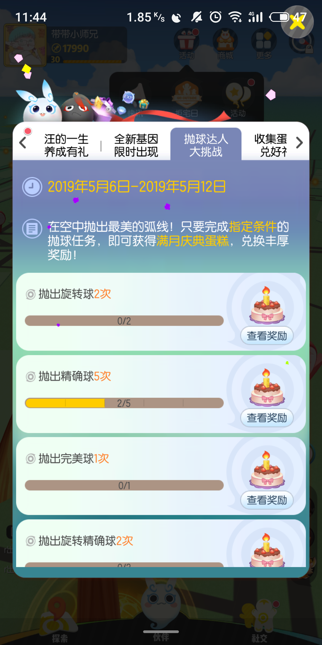 找到抛球达人挑战大活动,主要的获得蛋糕的方式就是通过累加我们的抛球方式。