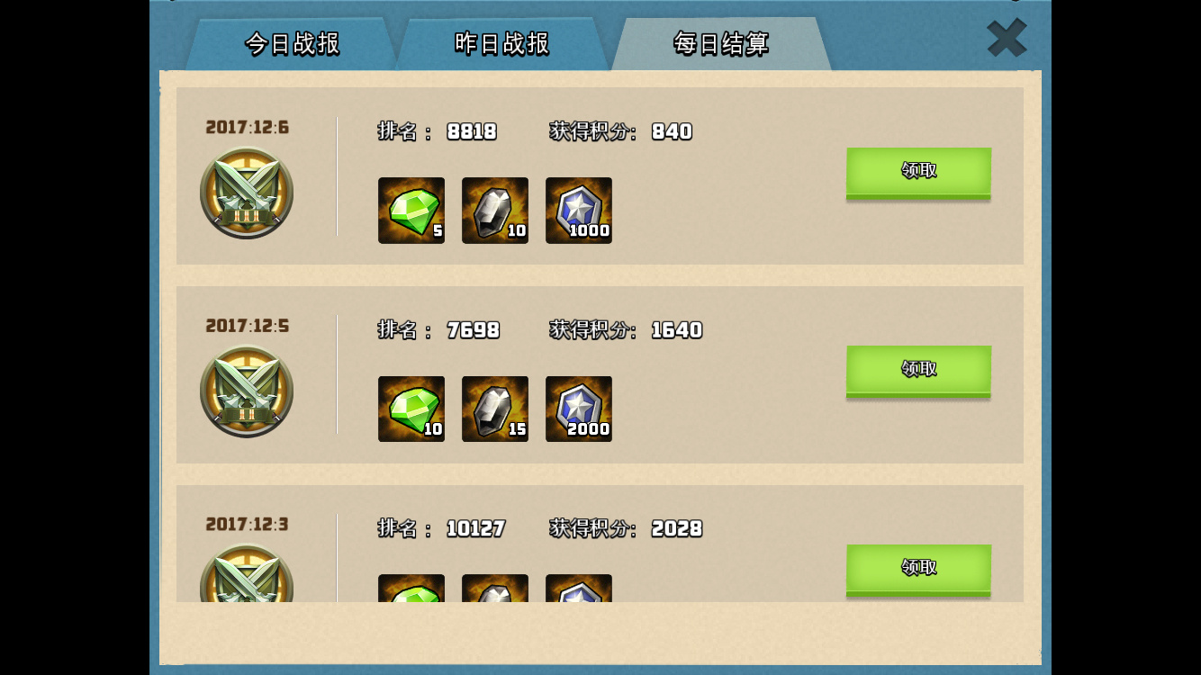 英雄角逐报名参战,前期不追求排名,能拿多少积分就拿多少,有积分就有奖励。这个阶段,依然是闯关战、掠夺战、优先升级金库,其他防御型建筑根据金币多少来进行适当的升级。