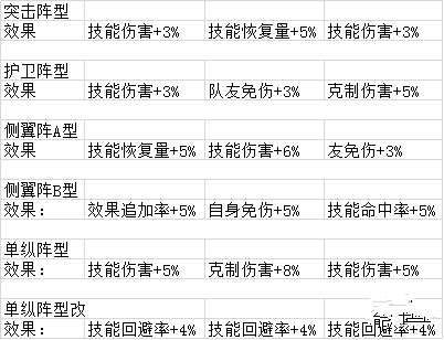 侧翼阵B型: -效果追加率+5%- 自身免伤+5% - 技能命中率+5%