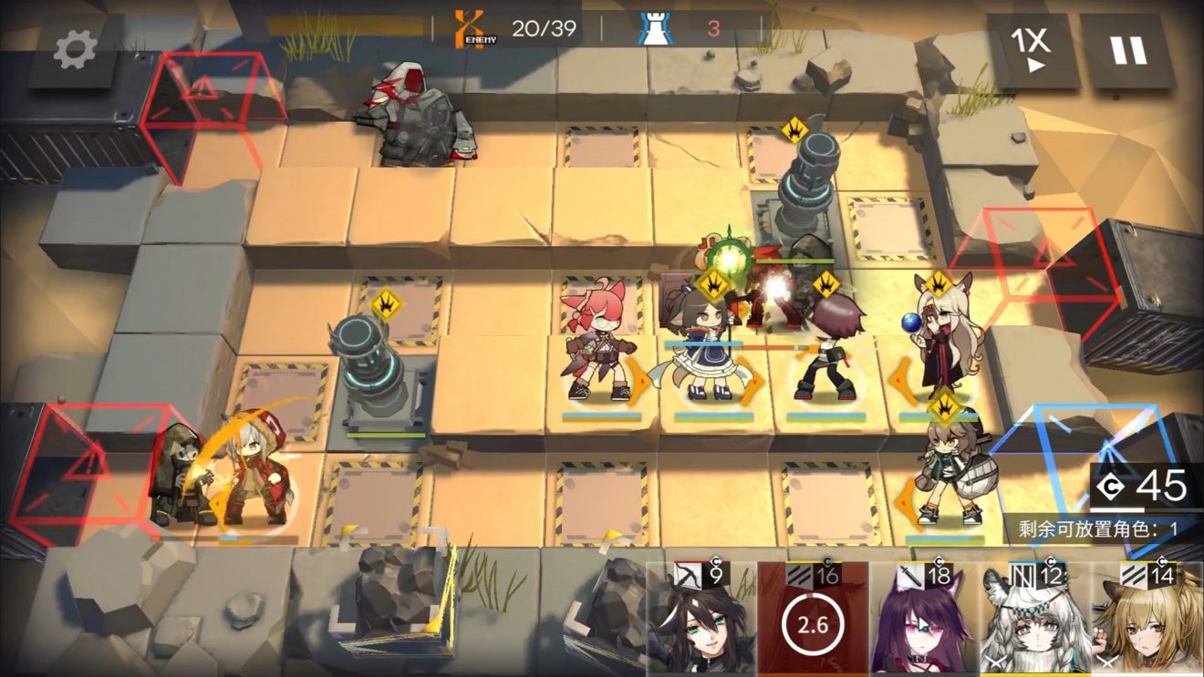 这一关中对多可以放8位干员,其中高攻击怪数量很少,高物抗怪没有。怪的总体数量也是不多的。总的来说还是非常容易过的。