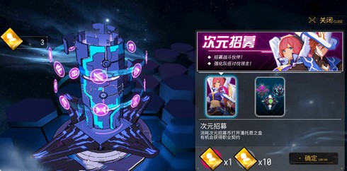 消耗一个次元招募币就可以进行一次抽卡,卡池中可以抽取到各种道具及角色碎片,当然手气爆棚还能直接抽到角色。