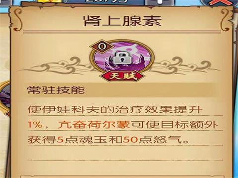 肾上腺素:伊万科夫的治疗效果提升1%(初始),亢奋荷尔蒙可是的目标额外获得5魂玉与50怒气。