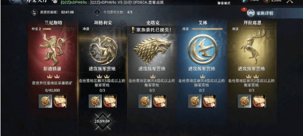 外交大厅在主堡9级时解锁,无需升级。在这里,我们可以接受各大家族的委托,完成委托任务就能领取研发加速等丰厚的奖励,并获得委托家族的好感度,提升家族的声望。当我们的声望达到一定等级后,就可以获得家族额外赐予的科研加速、兵种攻击、防御加成等强大祝福。声望满级的祝福效果甚至可达到加成度50%!