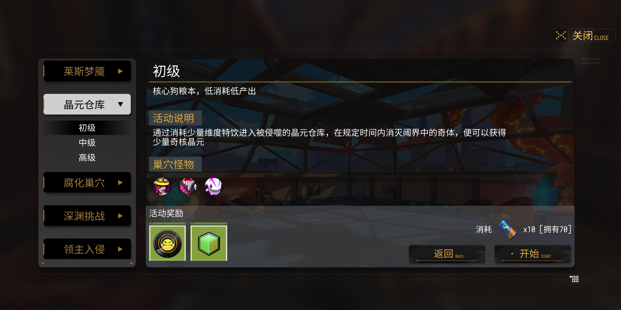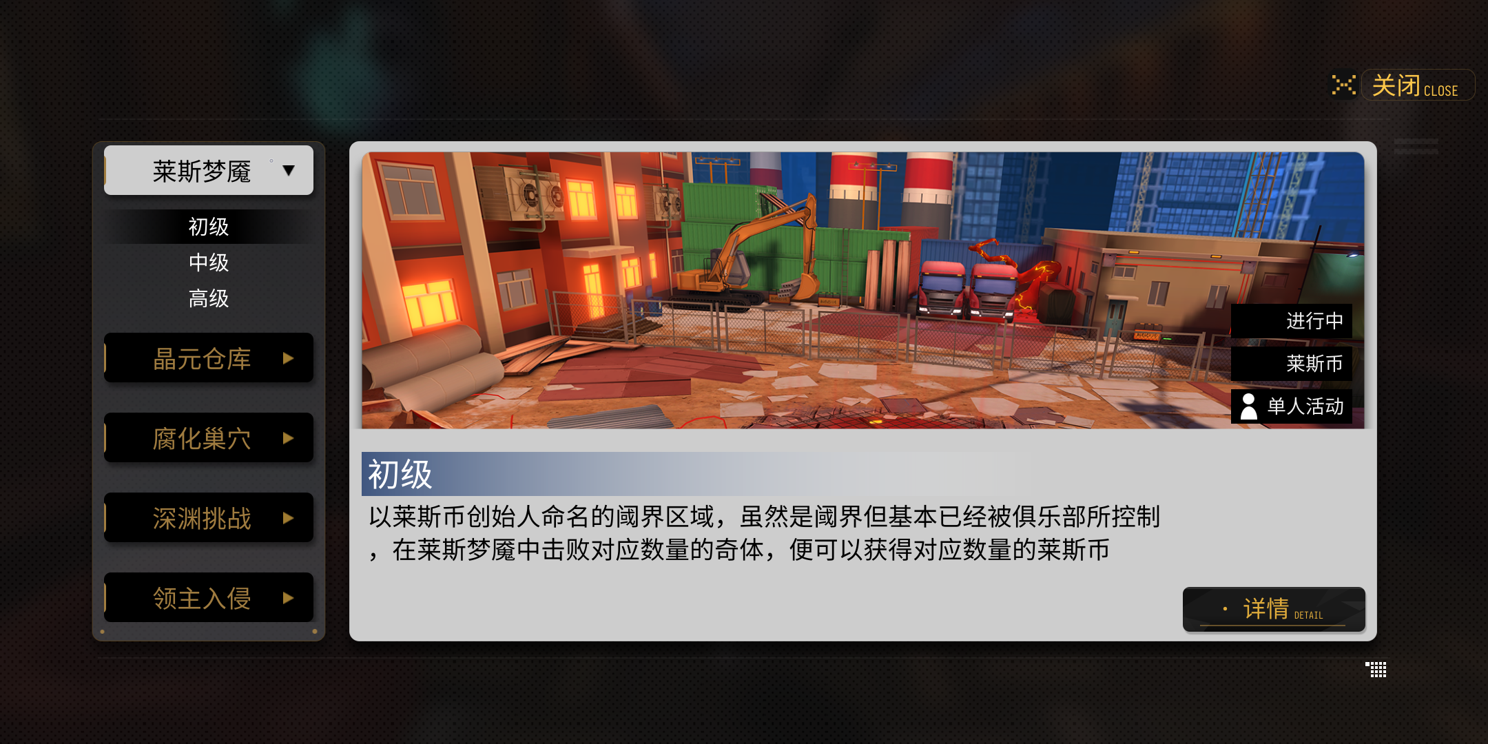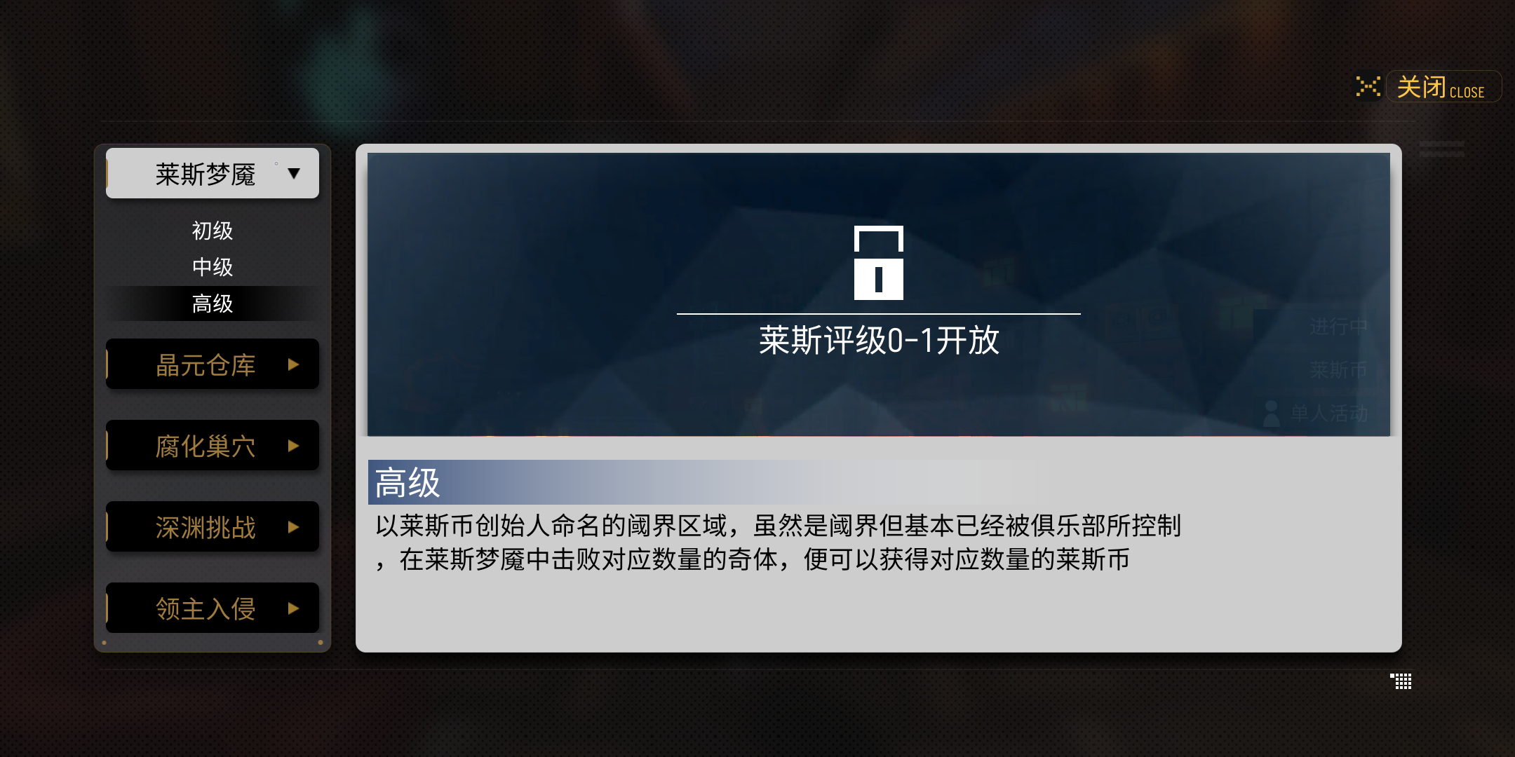 每个选项点开后难度也是不一样的,当然给的奖励也会随着难度的变化而变化,大家根据自身情况来选择就好。这里提醒大家一点,每张地图的高级模式需要的莱斯品级都比较高,想要挑战得先提高莱斯品级才可以。