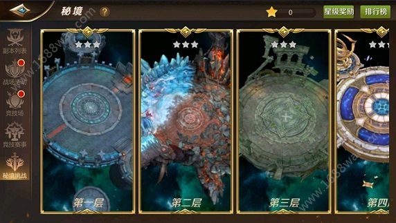 秘境副本全天开放,每层挑战副本可匹配进入和组队直接进入,队伍成员需均通关上一层以及均有通关次数。进入秘境后在游戏界面中有增益按钮,点击后可进行购买增益效果,增益效果有对自身和队友生效的描述,但仅可同时激活一个增益效果。秘境副本击杀所有BOSS,会根据达成不同的条件会获得1星至3星的通关评价,每周根据所获得的总通关星级可获得额外周奖励。秘境通关即可开启下一层,此时队长在结算界面中可点击“挑战下一层”按钮进入。