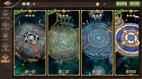 当冒险家等级达到70级时,就会开启秘境挑战玩法,冒险家可通过“征战”界面中的“秘境挑战”页签进入。在秘境每层副本的界面中可看是否可助战,星级说明以及副本层数星级等信息,点击秘境副本,在弹出的界面中可看到进入挑战,挑战奖励、BOSS背景。