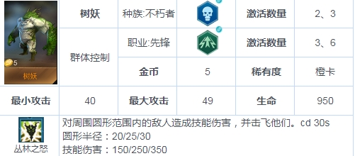 貌似是目前游戏里唯一的大团控,仅仅这一点它的地位就独一无二。地位等同于刀塔自走棋的潮汐,无论你是想稳固你的优势还是期望后期翻盘,树妖都是你的不二选择。真正的百搭单卡。他唯一的劣势可能就是存在开不出大招的尴尬局面。所以你需要将少许的防御装备给予他,当然,尽管需求回蓝装的棋子很多,但是树妖一定是最佳的装备选择,在后期他能否放出大招和控制住多少人是战斗的关键。