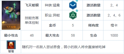 一张神奇的卡,和幻鲸一样在特定的场合或许能起到关键作用,唯一的核心价值在于直接秒杀对面的低麦弟弟棋子,不过还是需要一定的发动时间,60s的cd基本上一次战斗也就只能吞食一次。技能的优先级也是从对面的低费开始吞起,总的来说属于一张锦上添花的棋子,可以让本就天胡的你更加强大,至于更大的作用嘛。由于它的机制好像还真没。buff来说都略显鸡肋,作为单卡明显更实用。
