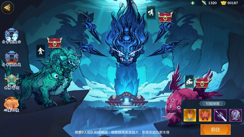 心魔试炼共有五档难度供少侠挑战,少侠需要提交道具即可进入秘境。少侠可以自行选择想要挑战的难度,选择的难度越高,对少侠战斗力要求越高,进入时需要提交的道具数量也越多。(道具可在悬赏玩法中掉落获得,可以进行交易。)心魔试炼将有大量装备、玄晶、宠物等珍稀奖励掉落。少侠选择的难度越高,奖励也会越加丰厚。