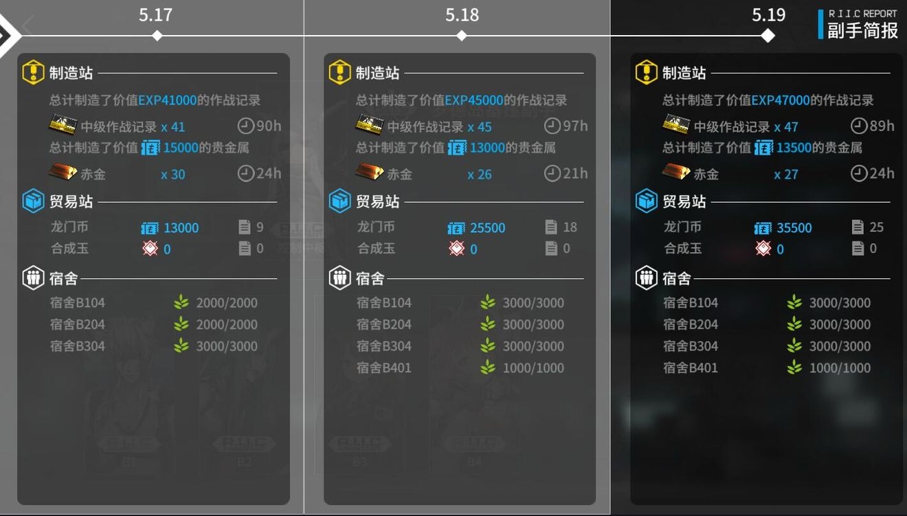 目前每天产值60500(1经验=1龙门币,贸易战不算直接产值,只是卖赤金的收益)
