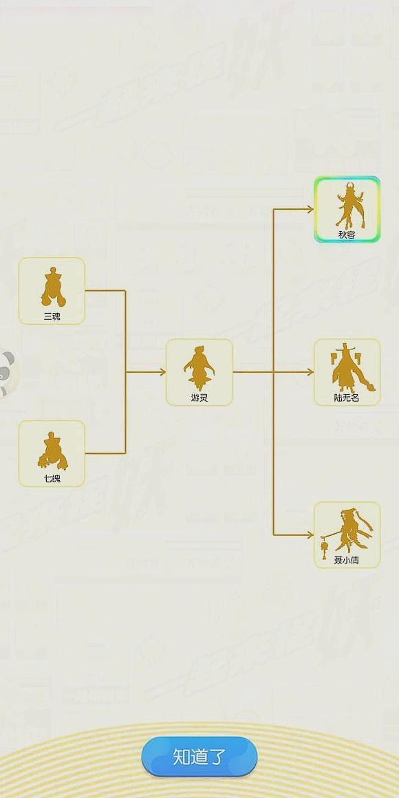 这个妖灵首先是要经过融合,也就是三魂和七魄进行融合,可以得到就是游灵,然后游灵可以开始分支进化,从中我们可以看到的就是是三个不同的分支,我们最耳熟能详的应该就是聂小倩了,但是这次开放的是秋容的进化,可能需要下次才有可能获得,秋容是一个火属性输出型妖灵,用处还是非常的大的,大家可以存上一个作为备用输出。