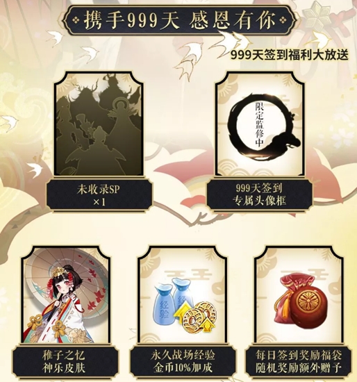以上就是关于《阴阳师》999天签到奖励一览的全部内容,更多精彩资讯尽在剥皮游戏网!
