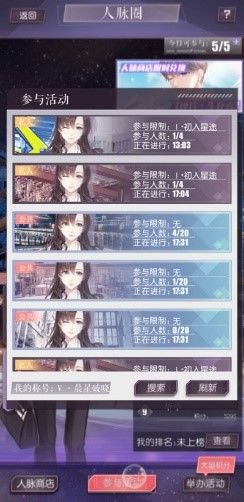 主界面左划,可以点击进入"人脉"玩法。点击"参与活动",即可选择加入感兴趣的人脉活动。不过需要注意的是,人脉活动分为"私人"和"公共"两种,加入私人活动需要解锁相关NPC才行。