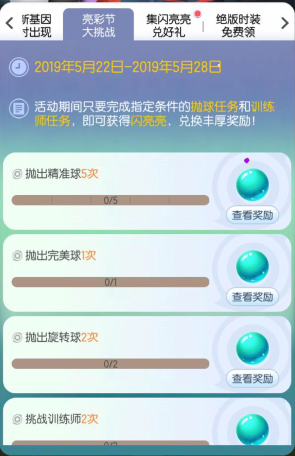 活动期间,只要完成指定条件的抛球任务和训练师任务,即可获得闪亮亮,兑换丰厚奖励!