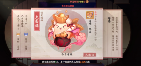 在限时内,庙会活动中有几率触发惊喜奖励,符灵碎片掉落翻倍;