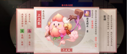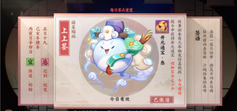 每日登陆时候,灵主可以进行一次福运抽签,抽签时随机获得一种福运,福运有着特定的奖励加成,参与对应玩法时即可获得收益加成;