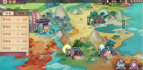 云游是游戏中获取经验、通宝、星宿等资源最主要的渠道。大部分战斗均会消耗体力,体力每五分钟恢复一点,也能通过每日领取及玉帛购买获得。