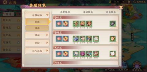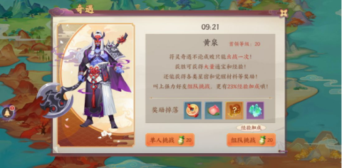 故事副本中有几率遇到奇遇,获胜可获得大量通宝和经验。