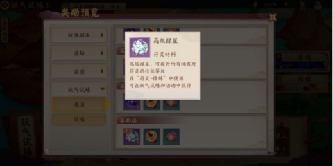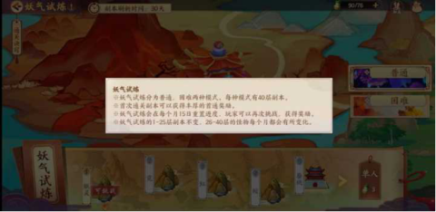 妖气试炼分为普通,困难两种模式。每种模式有40层副本。