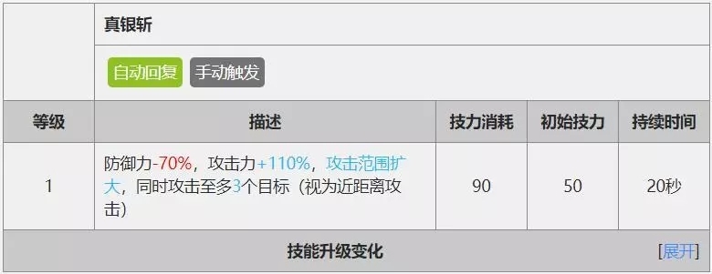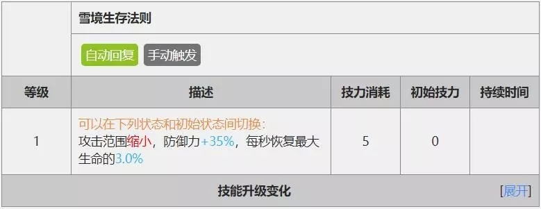 中规中矩但实用的输出型技能,伤害加成较高,攻击回复且技力要求低,在精英二前是强化银灰输出的唯一选择。