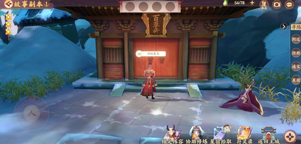 进入河洛地图后直接往里面走,可以看到一栋名叫百草折的房子,房子旁边还有一位弹琵琶的人。