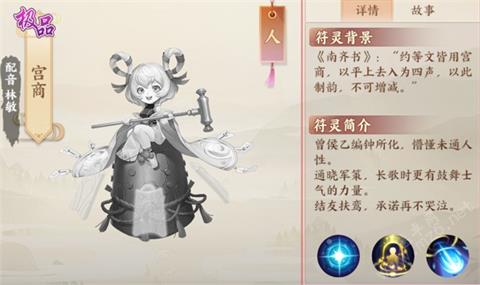 1、宫商是一位品质达到了极品的符灵,仅次于绝品,入手价值高;
