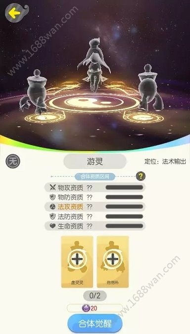 合体觉醒中“游灵”的每种资质,将会以参与合体的“抱抱朴”与“虚灵灵”相应资质的最低与最高值为区间随机生成。